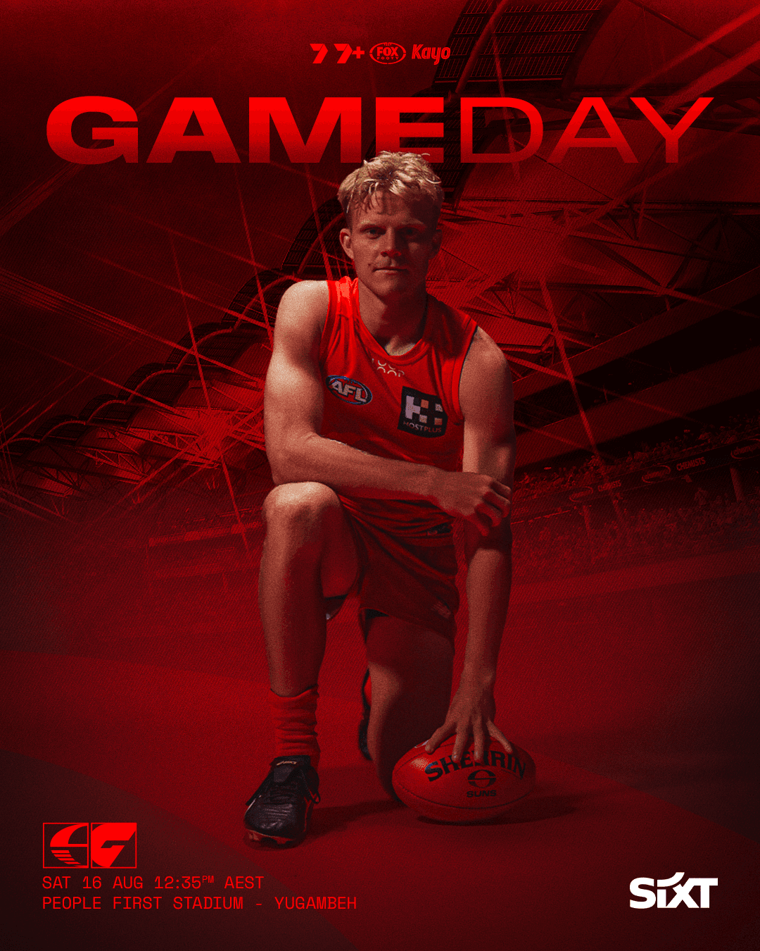 Sports graphics series capturing the energy and identity of the Gold Coast SUNS through dynamic visual storytelling. This work spans the full rhythm of an AFL season — from game day graphics that ignite matchday atmosphere, to milestone celebrations, retirement tributes, and welcome announcements for newly traded players. Through a bold and vibrant palette rooted in the club's identity, each graphic is crafted to connect with fans on social media and reflect the moments that define the season.